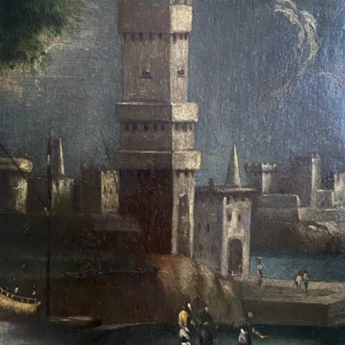 Vue sur la tour d’un port animé