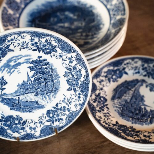 Ensemble d’Assiettes en Faïence Fine – Décor de Bleuets