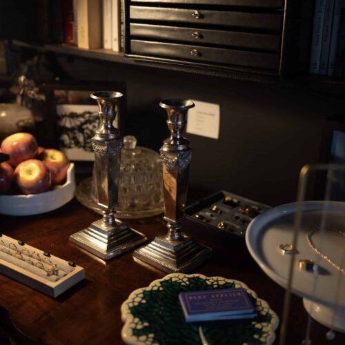 Paire de Bougeoirs en Métal Argenté – Style Empire