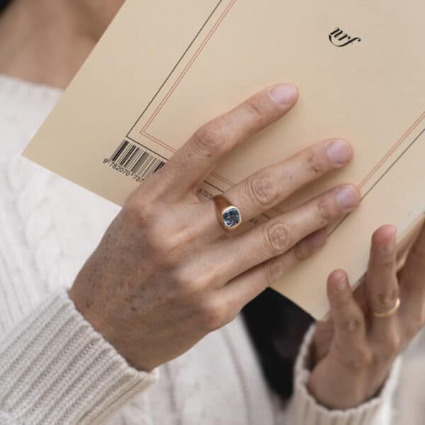 • Chevalière en or jaune 18 carats et spinelle bleue – Années 1960