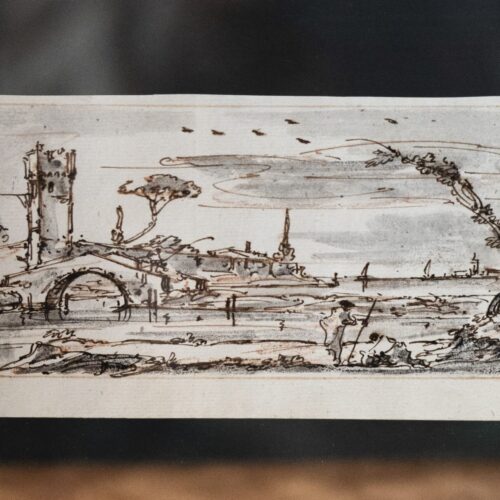 • Vue d'un Village Italien sur un Lagon – XVIIIe Siècle
