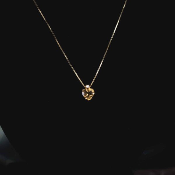 Collier en Or 18 Carats, Citrine Cœur et Diamant Naturel