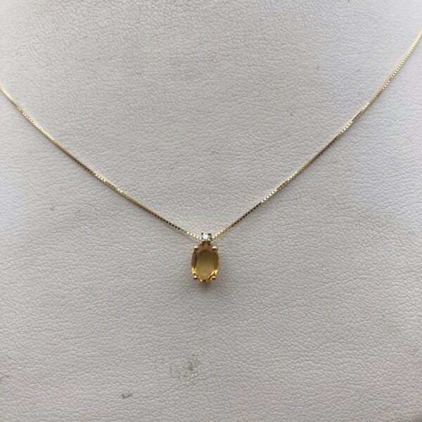 Collier en Or 18 Carats, Citrine Ovale et Diamant Naturel