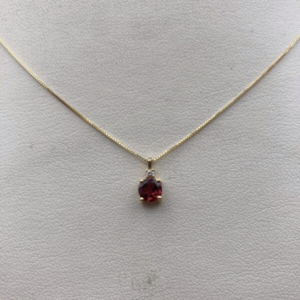 Collier en Or 18 Carats, Grenat Ovale et Diamant Naturel