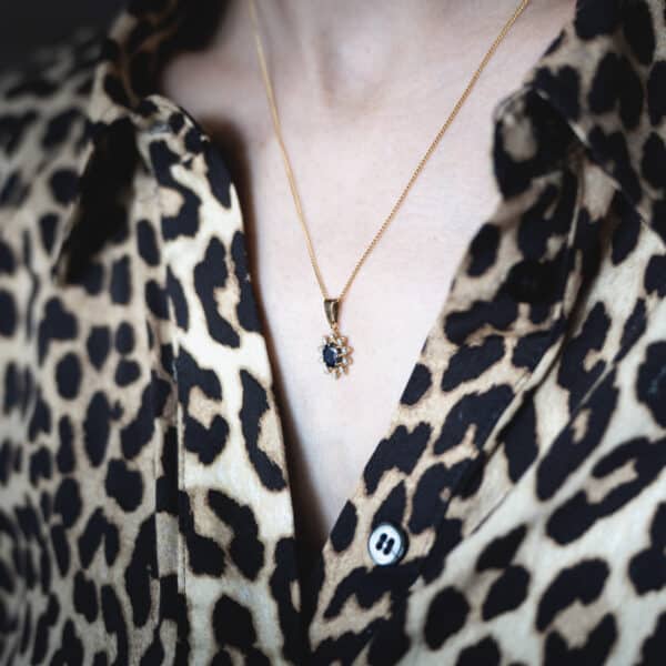 Pendentif en or jaune 18 carats – Saphir ovale et diamants