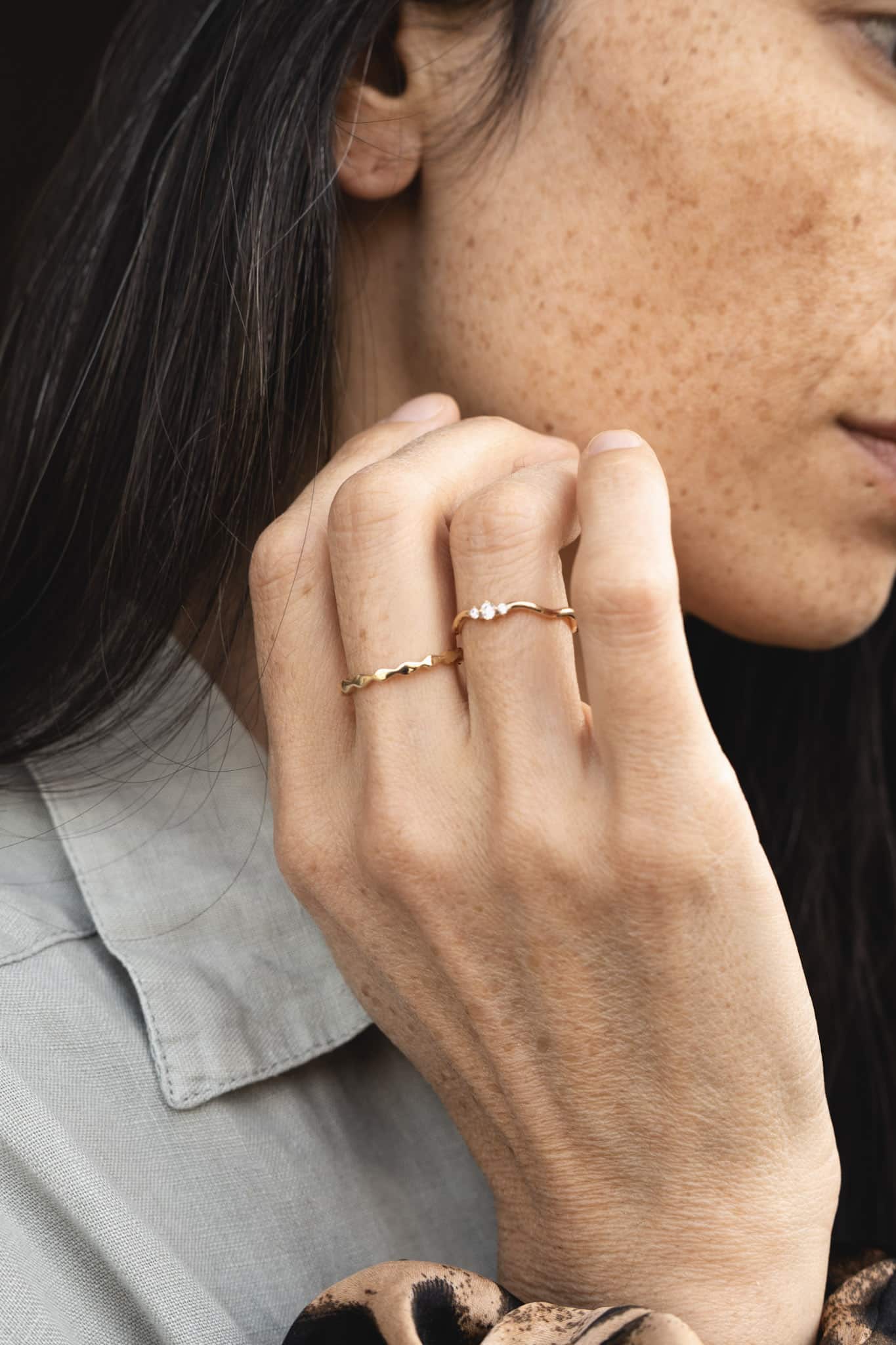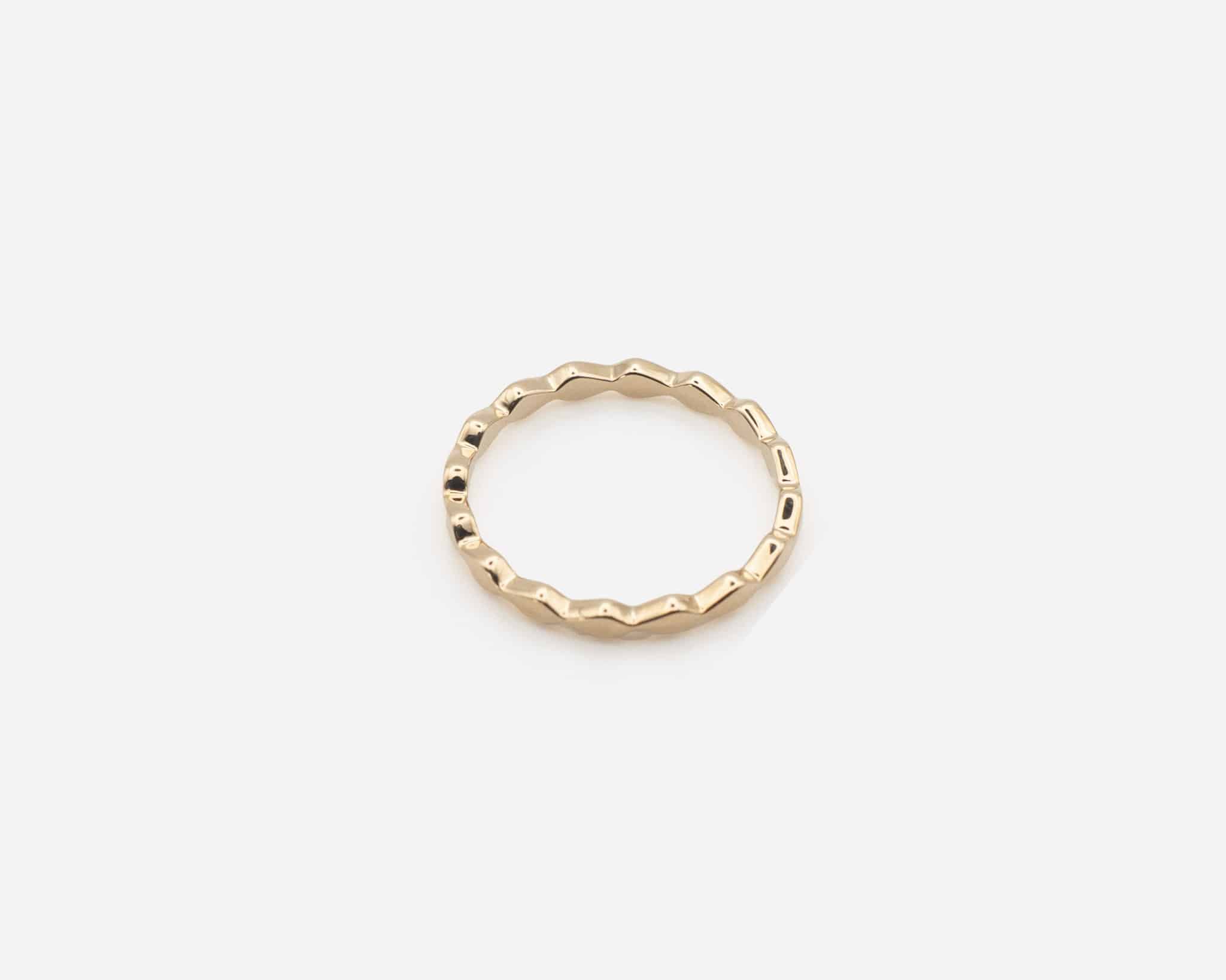 D’une élégance discrète, la bague Lola joue avec la lumière grâce à son anneau finement façonné en losanges. Son design minimaliste et structuré en fait une pièce intemporelle, parfaite pour être portée seule ou en superposition avec d’autres anneaux.