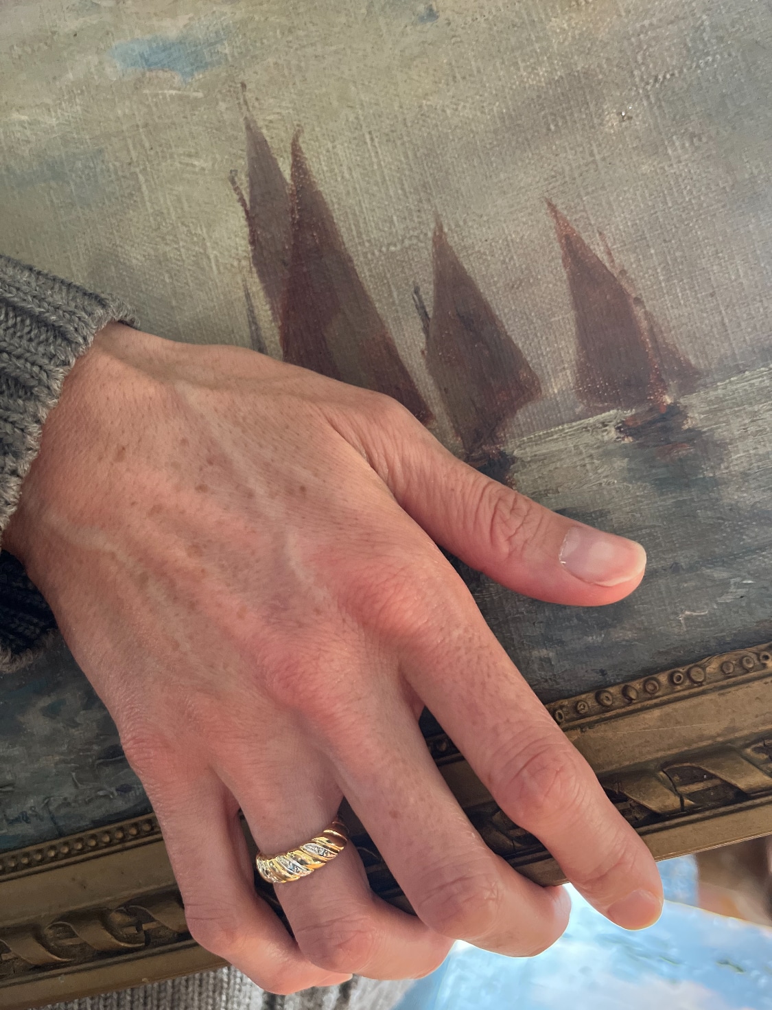 Bague en or jaune 750‰, au dessin fluide et sculptural.