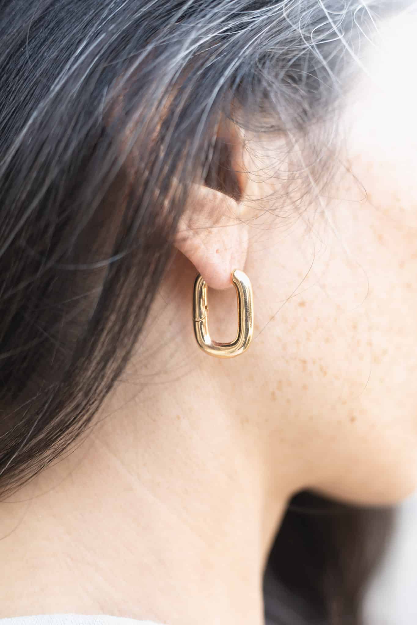 Élégantes et contemporaines, ces boucles d’oreilles rectangulaires en plaqué or 18 carats apportent une touche sophistiquée et moderne à votre style. Leur design épuré et légèrement bombé en fait un bijou intemporel, parfait pour un look raffiné au quotidien ou pour une occasion spéciale.