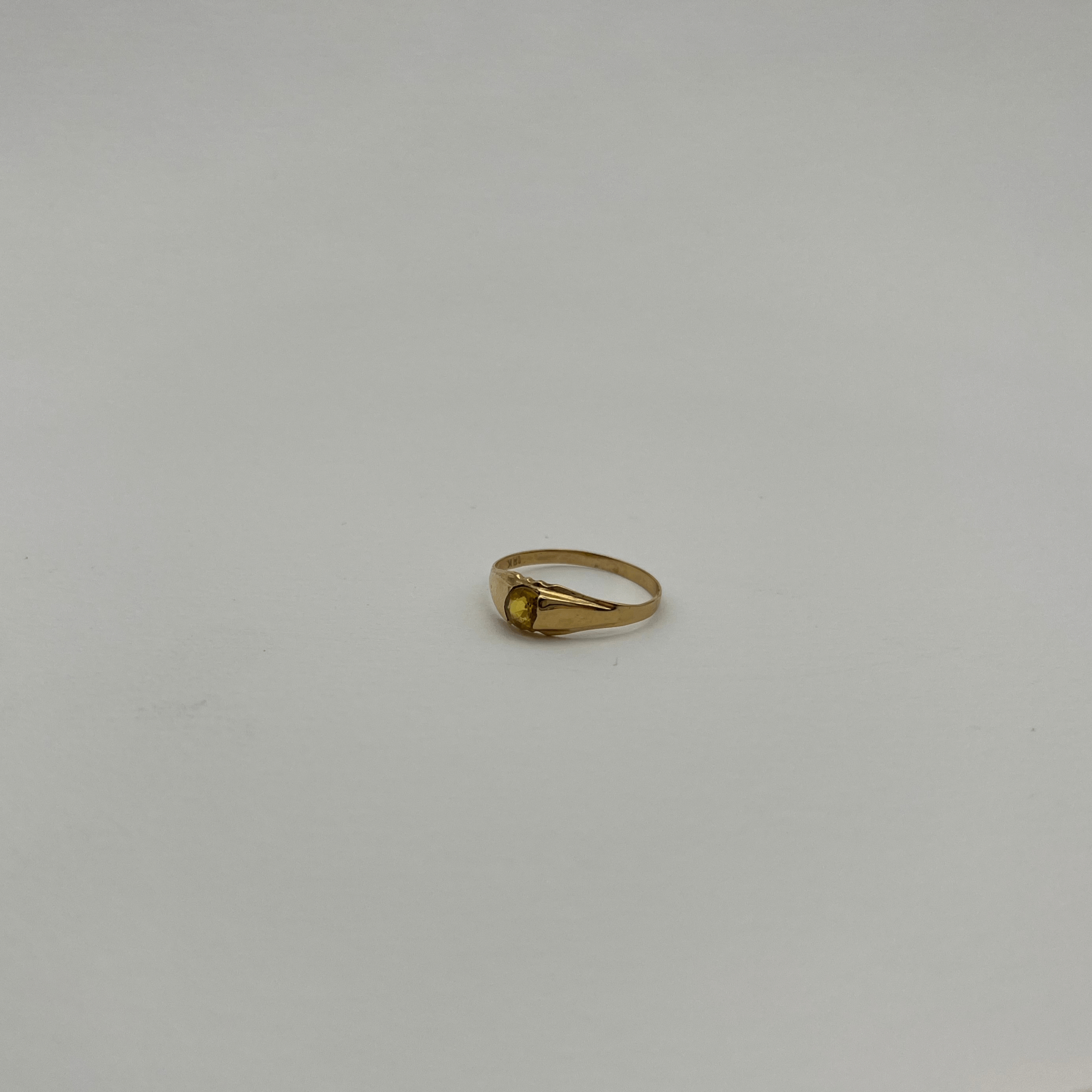 Cette chevalière en or jaune 18 carats est ornée d’une spinelle bleue de 2,50 carats. Conçue dans les années 1960, elle marie lignes classiques et éclat moderne. La pierre, taillée en cabochon, offre des reflets bleutés profonds et lumineux.