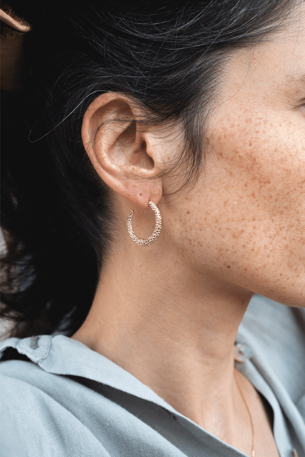 Ces créoles demi-lune en plaqué or séduisent par leur texture martelée et leur brillance élégante. Leur forme ouverte, légèrement épaisse, apporte du caractère tout en restant faciles à porter au quotidien.