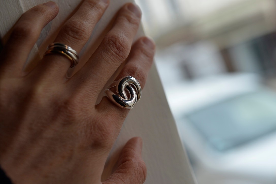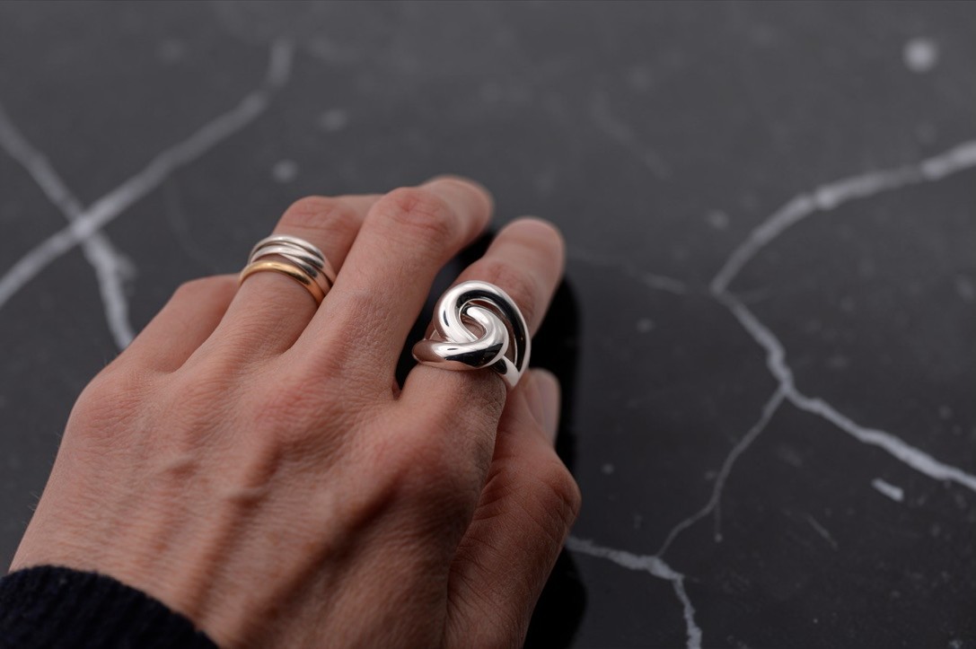 La bague Gia est façonnée en argent massif 925 et dessinée autour d’un motif enlacé aux lignes fluides.